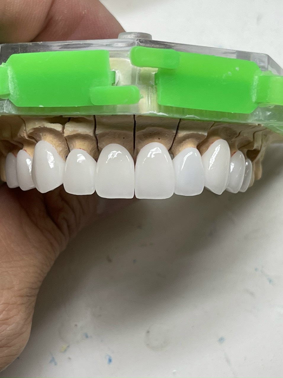 Sứ Nacera trắng trong, tạo cổ nướu giả để  nhìn răng tự nhiên hơn.